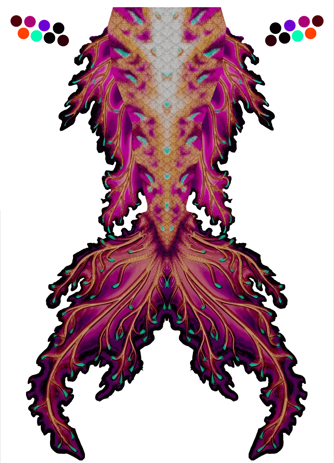 The full custom designing fee begins at 480€ for a tail with a personalized fluke shape, your scales of choice and skin colours if you wish to include the waistband.