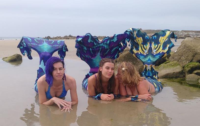 Can we ever get enough Toxifoliae ? Lou and Etel love swimming together, so we Repainted their tails ! And I took the opportunity to join in their first swim in their new tails...